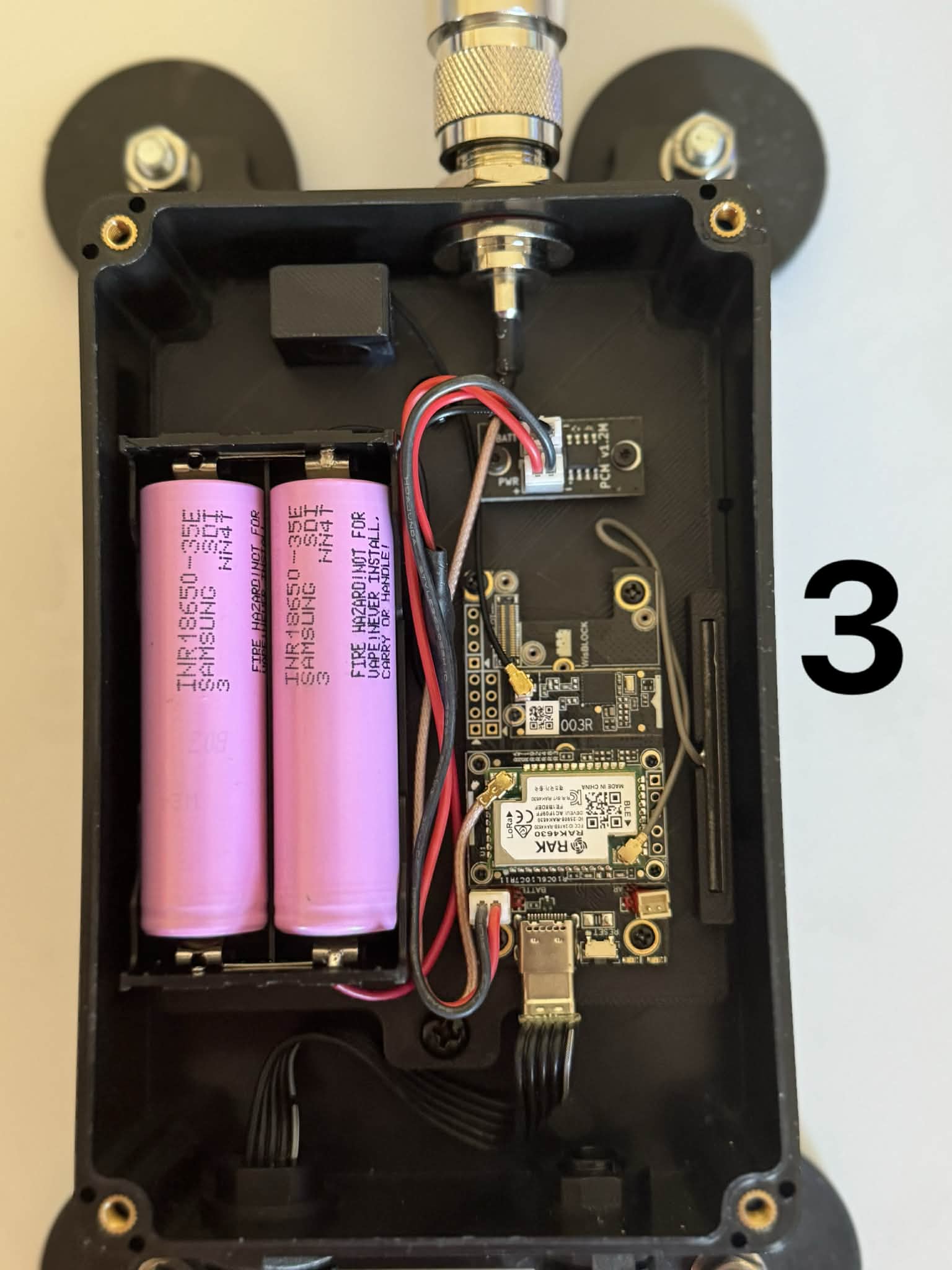 Standard USB-C waterproof passthrough with PCM (Battery Protection Modules) and breather. Compatible with both RAK12500 and RAK12501 GNSS GPS modules.