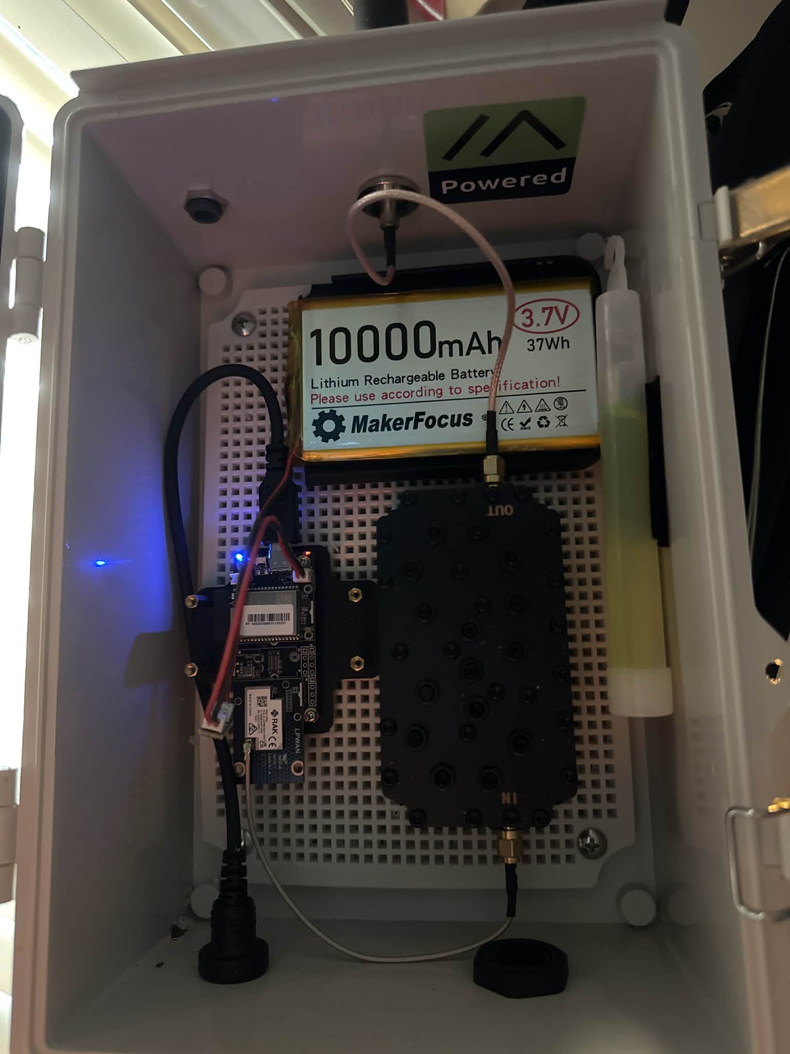 Featuring a 10,000mAh high-capacity LiPo battery for extended runtime, a 915 MHz cavity filter for superior signal clarity in noisy environments, and a high-gain 5 dBi omnidirectional antenna. The rugged weatherproof enclosure includes , USB-C waterproof pass-through for charging/programming, and a pre-drilled hole with cable gland for POE cable entry.